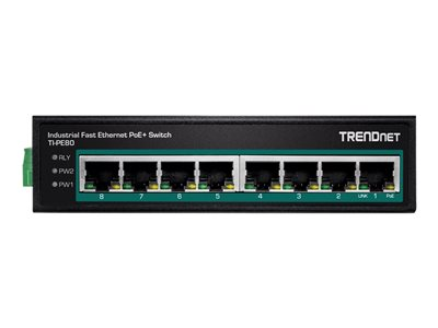 TRENDnet TI-PE80 - Industrial - conmutador - 8 x 10/100 (PoE+) - montaje en riel DIN, montaje en pared - PoE+ (200 W) - alimentación cc